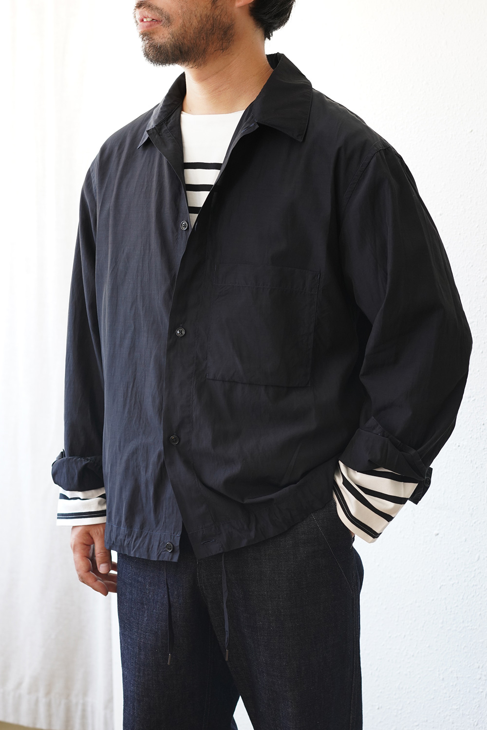 夏場に向けて活躍する素材、キュプラの特性を生かした SHIRTの様な coach jacketの様なITEMです