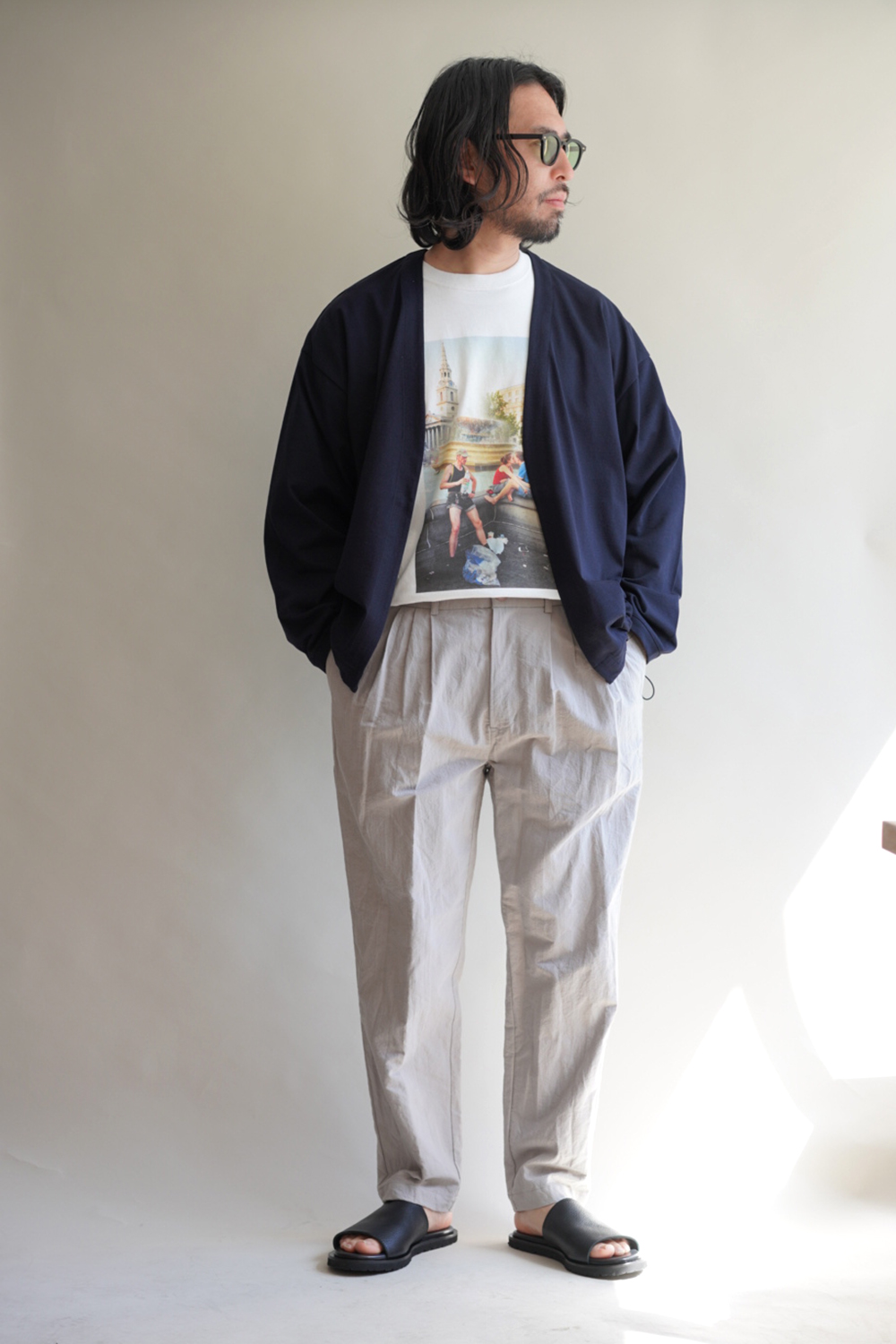 パンツの生地感からも清涼感があるので、暑苦しく見えない