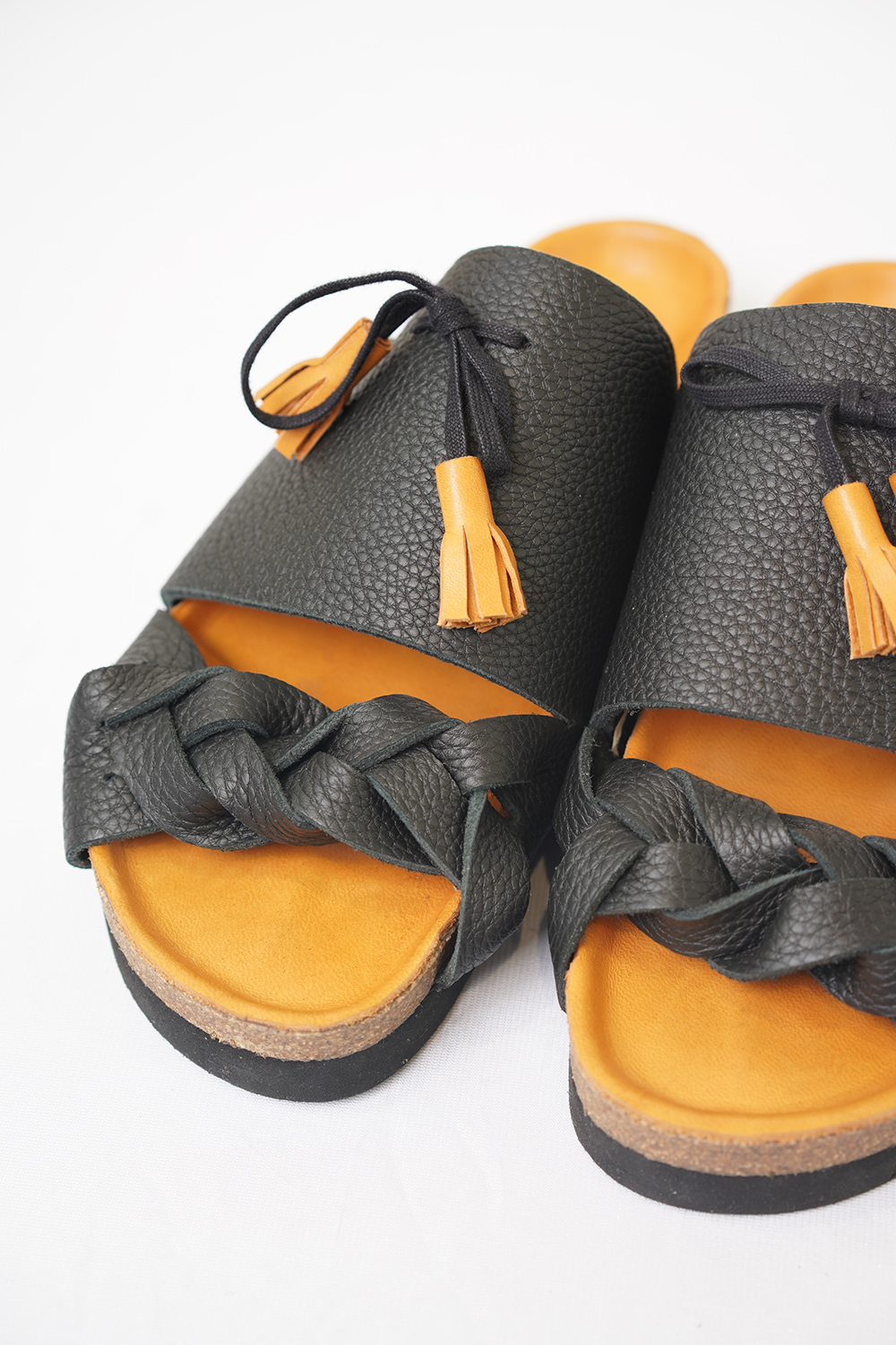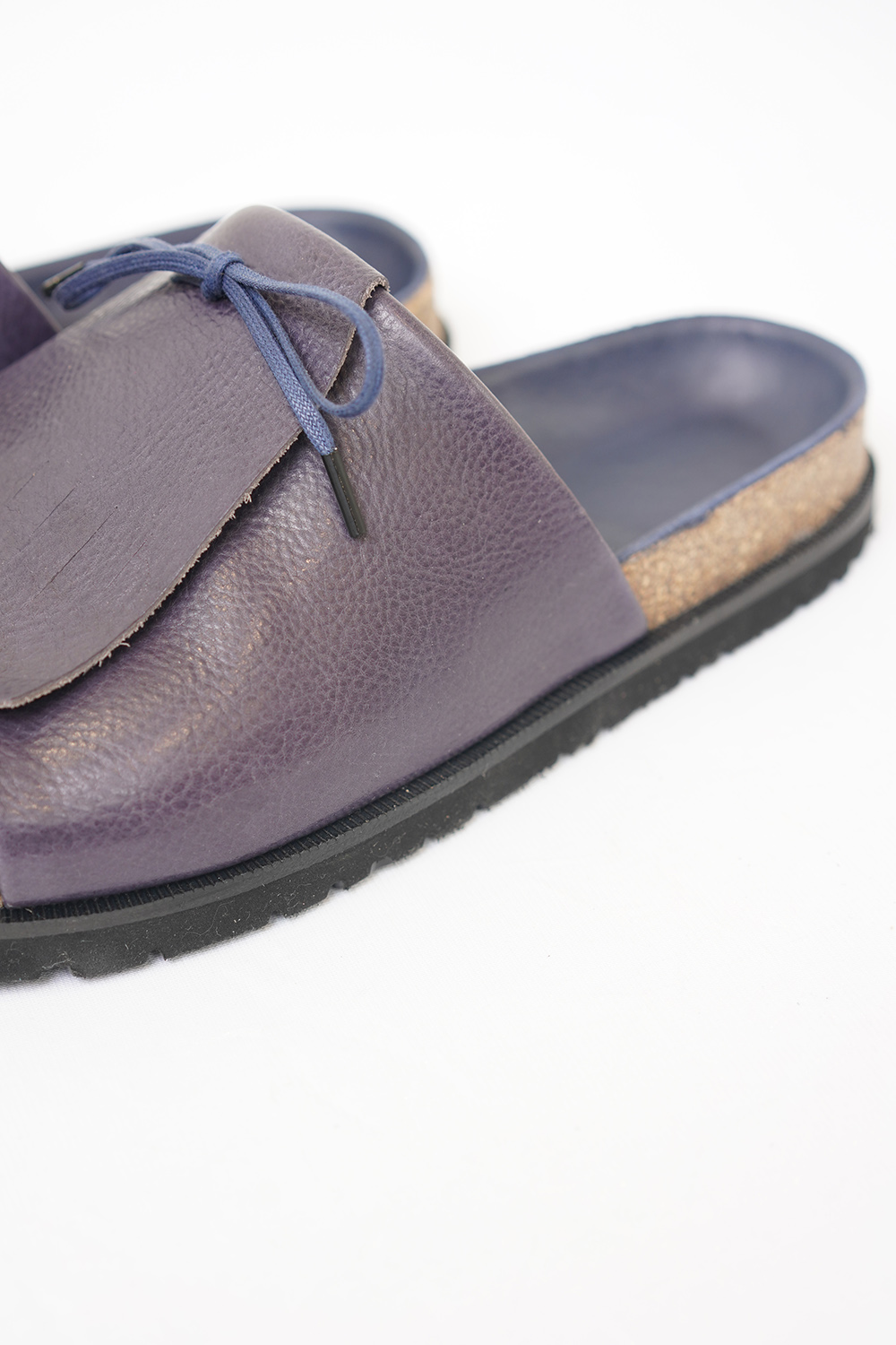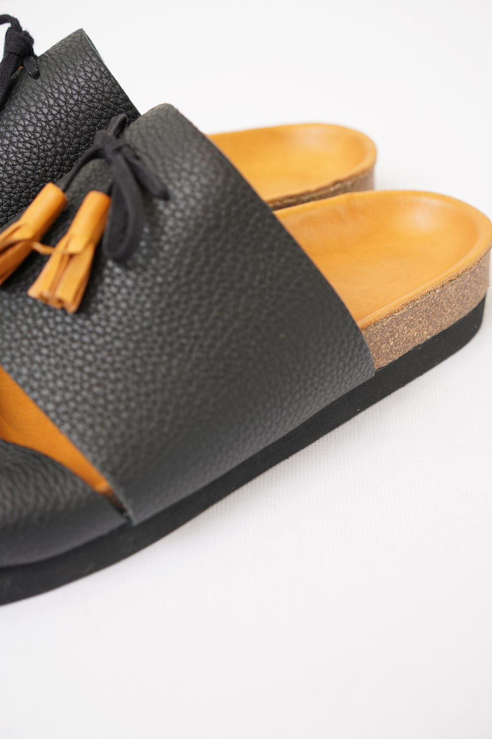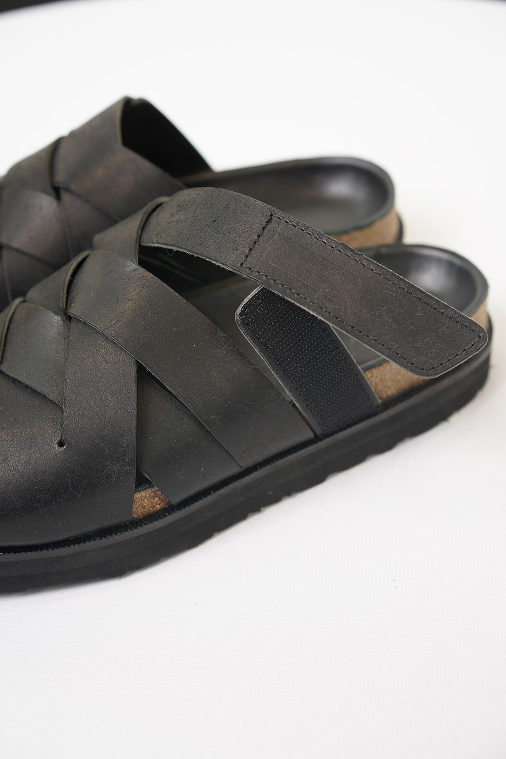 一枚革に切込みを入れたデザインで足をソフトに覆ってくれるサンダルです