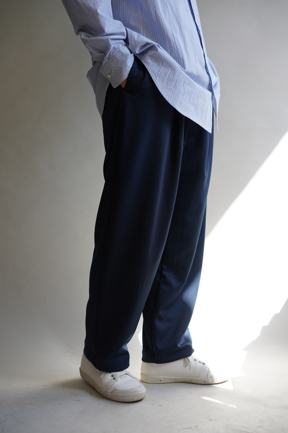 某有名スポーツブランドも使用している機能素材を1タックデザインのイージー仕様パンツにデザイン