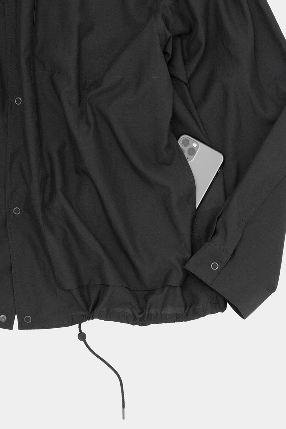 裾のスピンドルで丈感が調節できるのでインナーに寄って、短くしたりできるデザインで