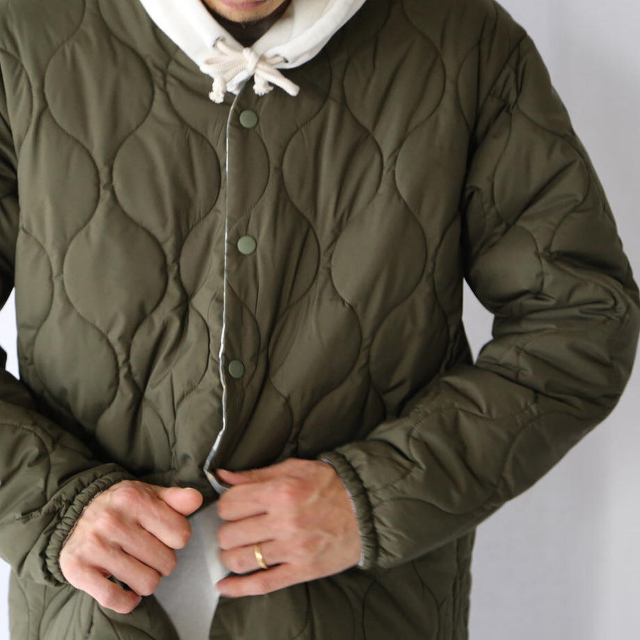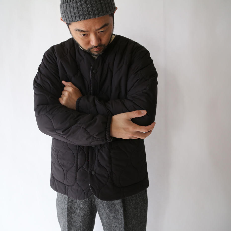 ノーカラーなのでカーディガン感覚でサラッと羽織れ、しっかりと保温してくれる。