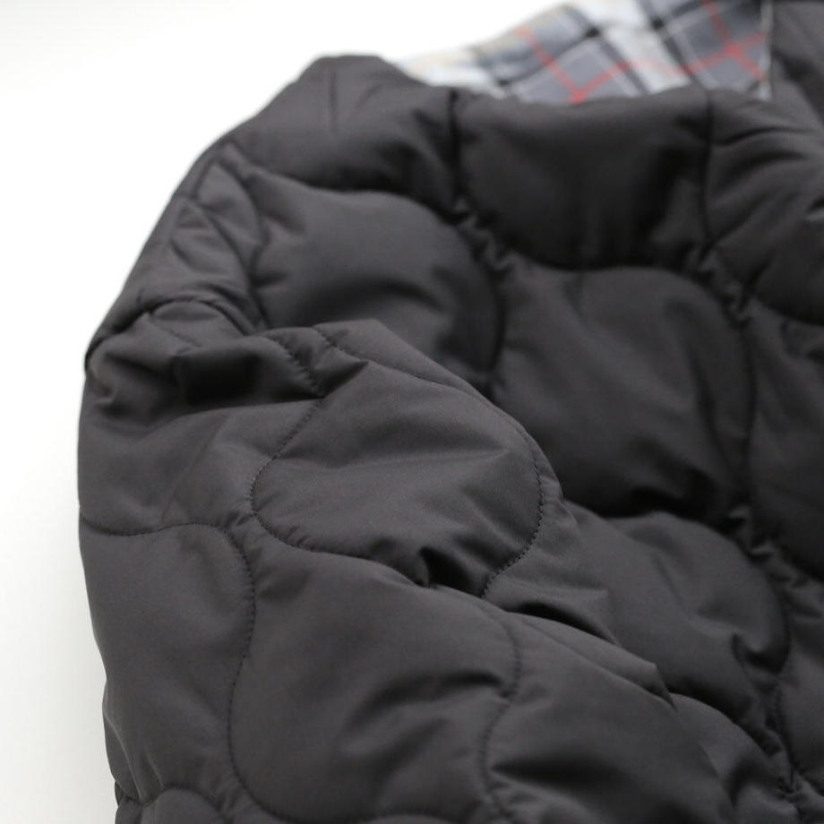 撥水性ポリエステルと、TORAYの”sunstate Ⅱ”を入れ、微起毛でヒヤッとしないオリジナルひょうたんキルトにした表地と、裏地は綿ネルチェック。