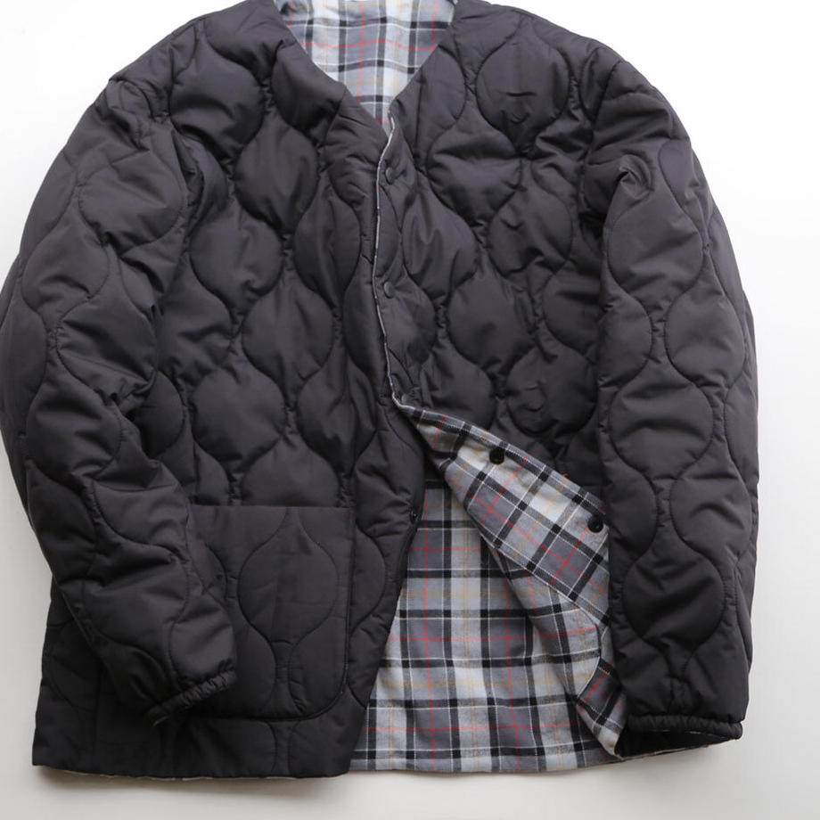 またリバーシブルでチェックを表に着ることもできるので、重ね着のアクセントにも使える。