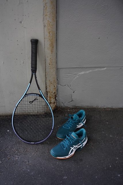 ラケットを振っても、可動域が確保されているデザインなので