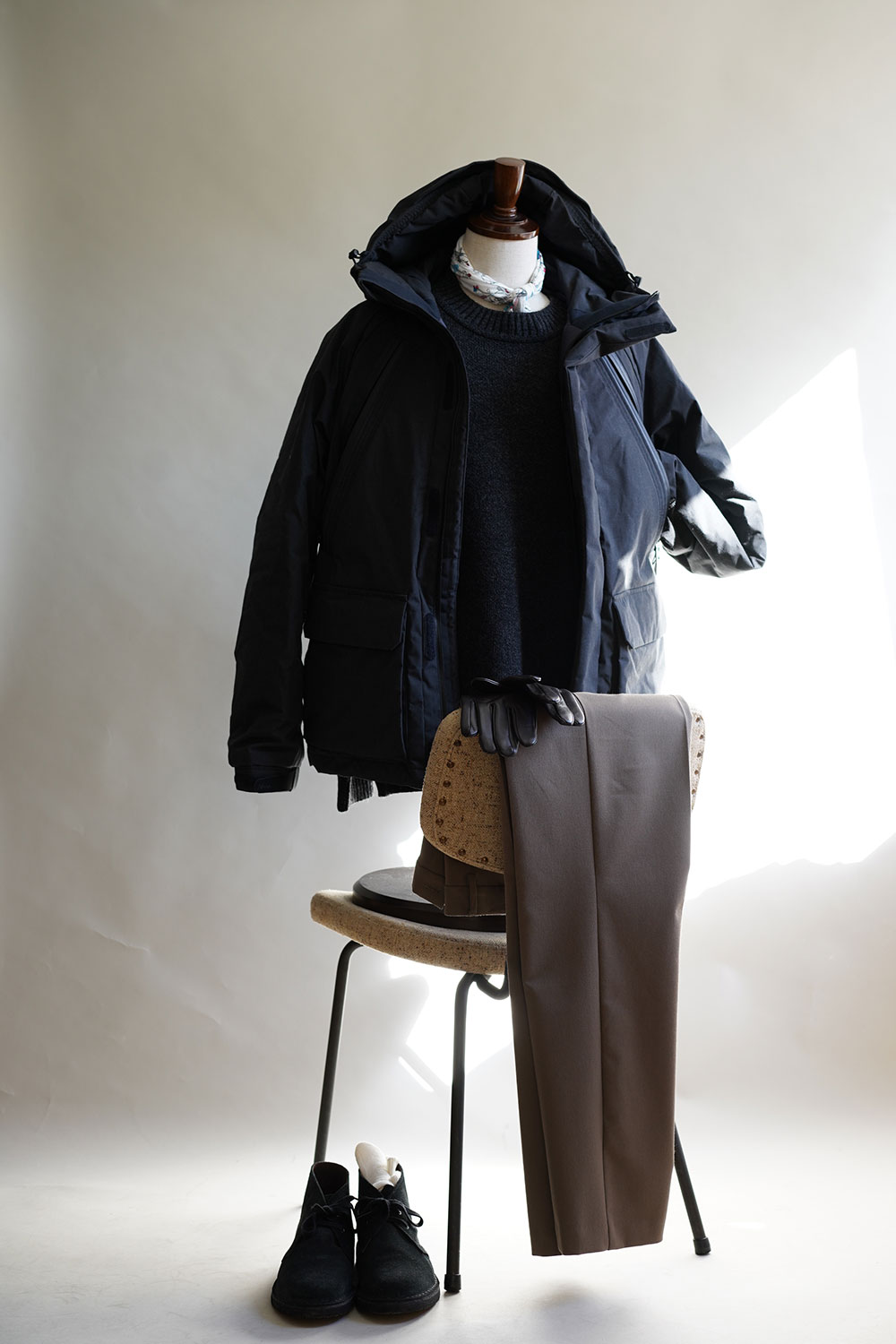 見た目は ダウン ぽくないマットな仕上がりで、且つ中側にボリュームを付けているので