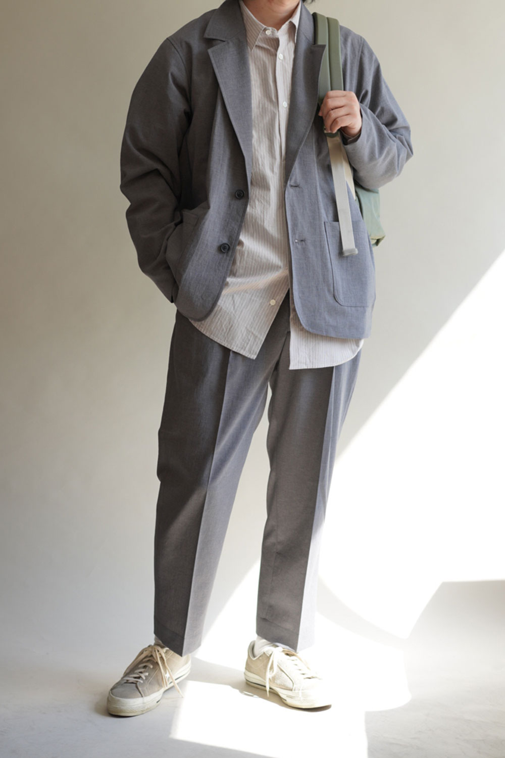 特長は、Wool tropical調化学繊維で、とても風通しの良くシワになりづらい、洗濯機で洗えるJacket。