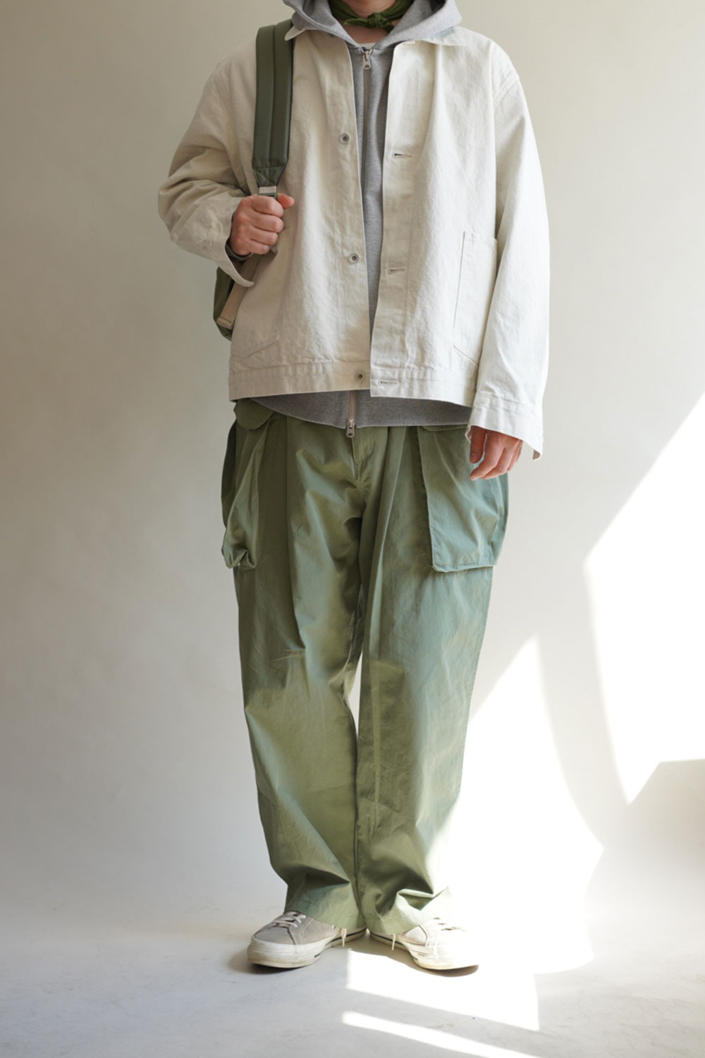 すこしルーズなシルエットにしながら、スウェットパーカーをインナーに入れて