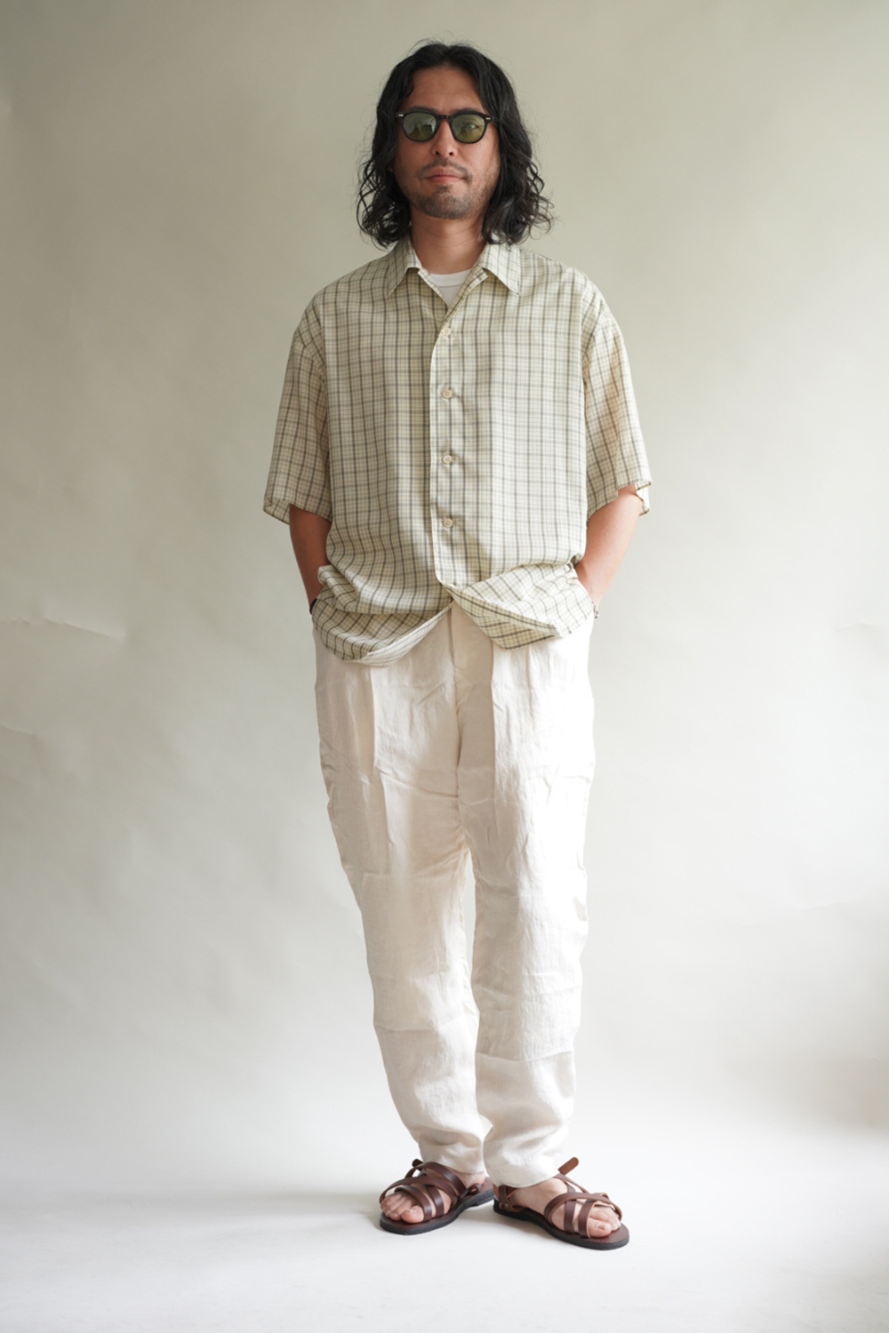 生地の段階でも縫製後も仕上げ加工を極力抑えて落ち感のある軽やかな風合いに仕上げました。ゆったりとしたシルエットと華奢なステッチワークなどミニマムながらUNDECORATEDらしい佇まいが特徴です。