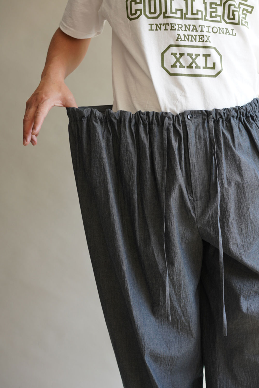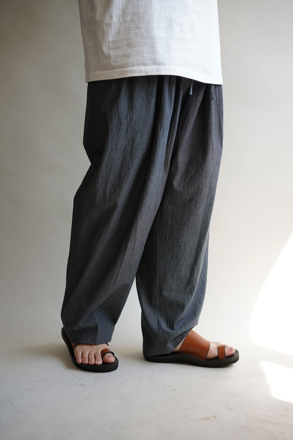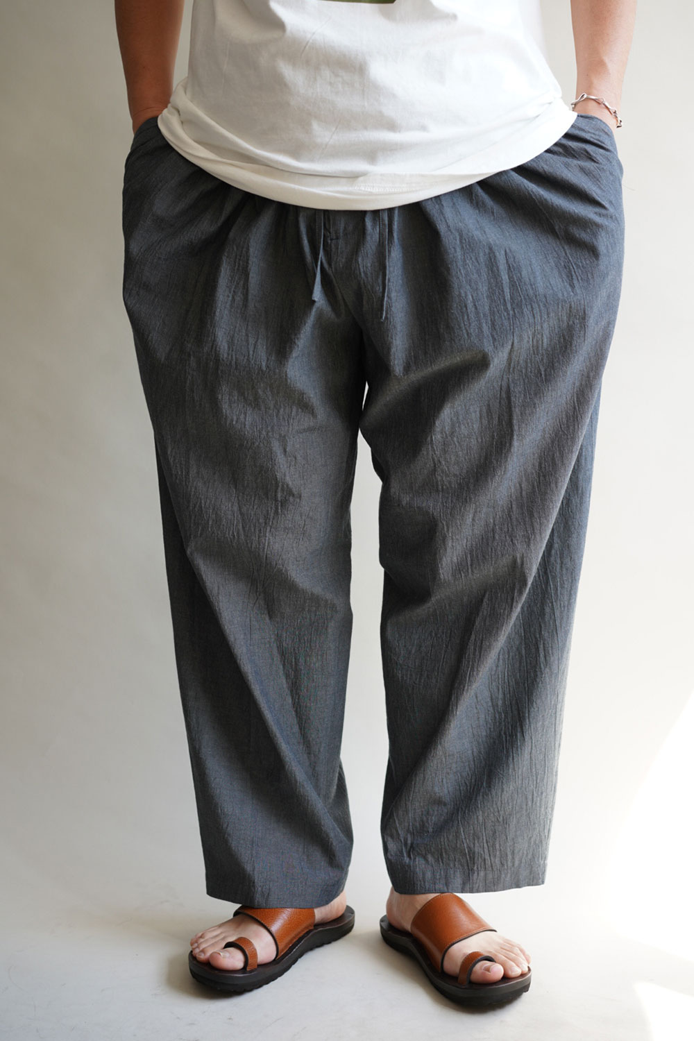 「誰のsizeでもフィットする」KICS DOCUMENT.(キクスドキュメント)CHAMBRAY GATHERED PANTS