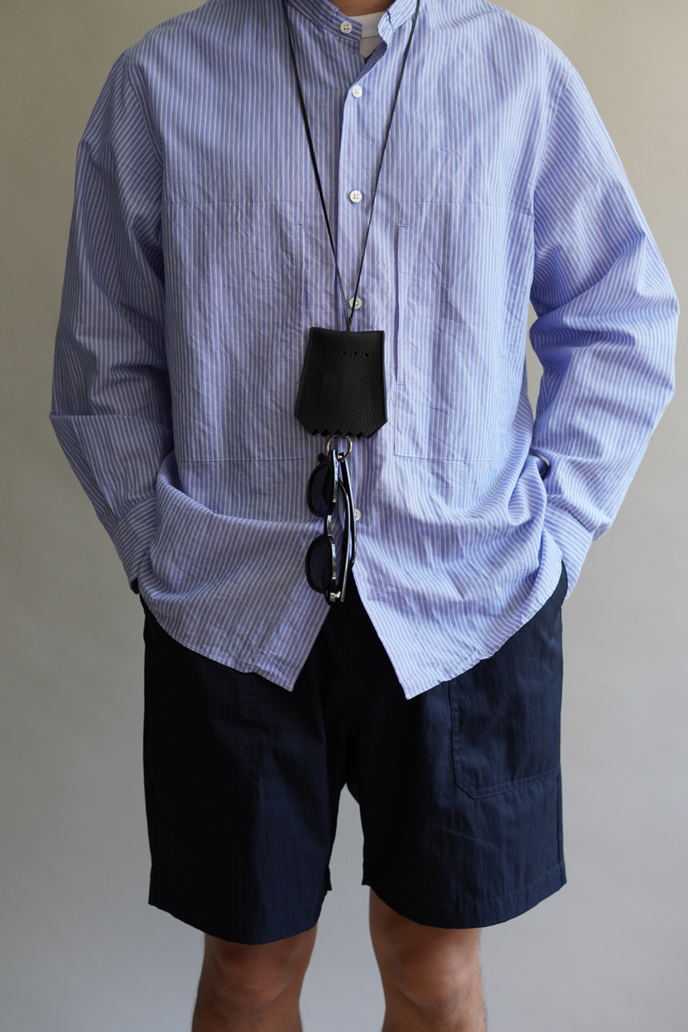 夏場でも着用できる風通しの良い生地感とサイジング設計で、体に密着がないリラックスシルエット