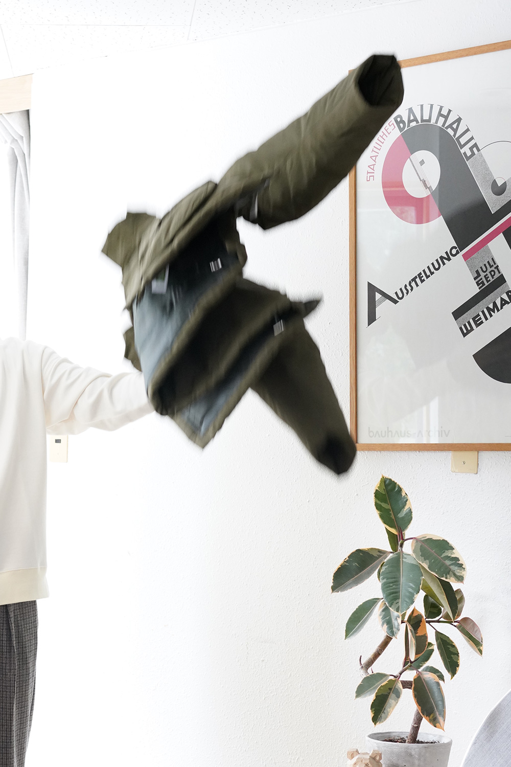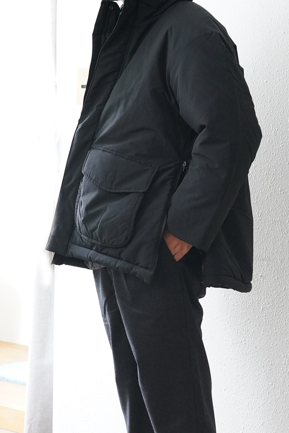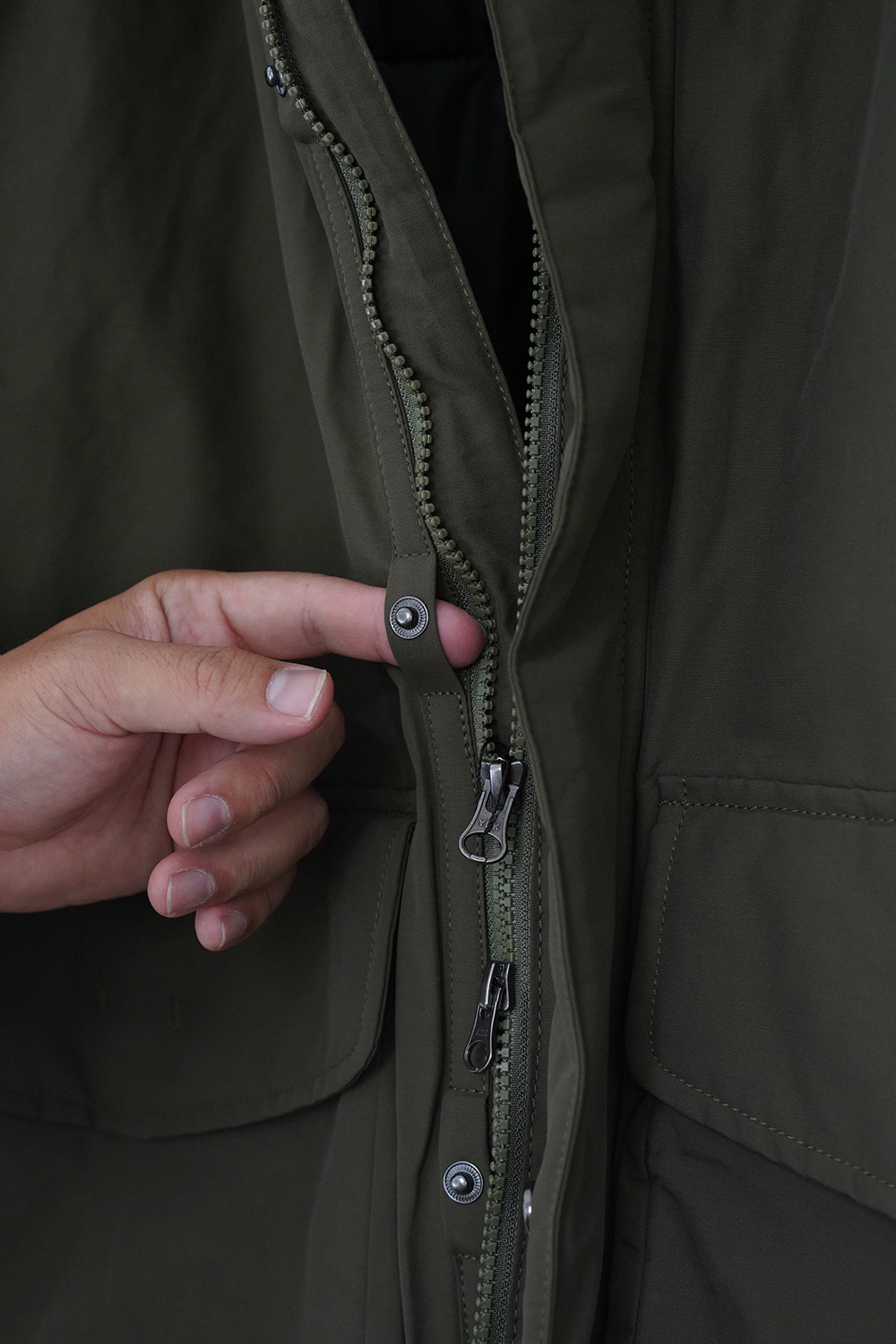 脇のジップをガバッと開くと、Aラインが強調されます。またパンツポケットへの手の出し入れもし易くなります。