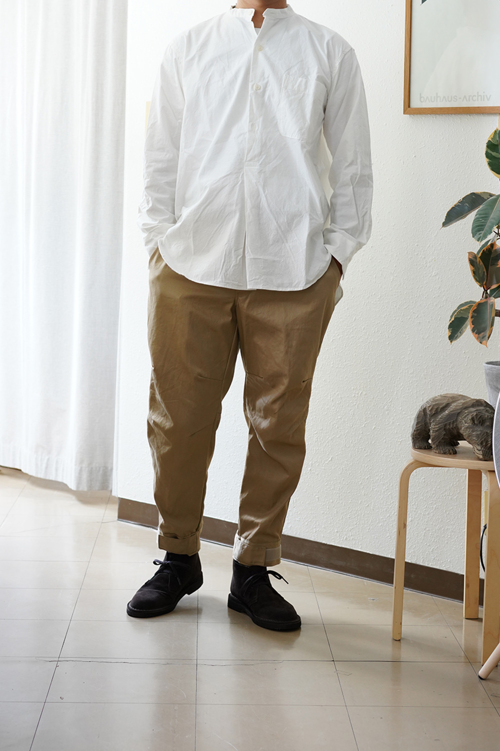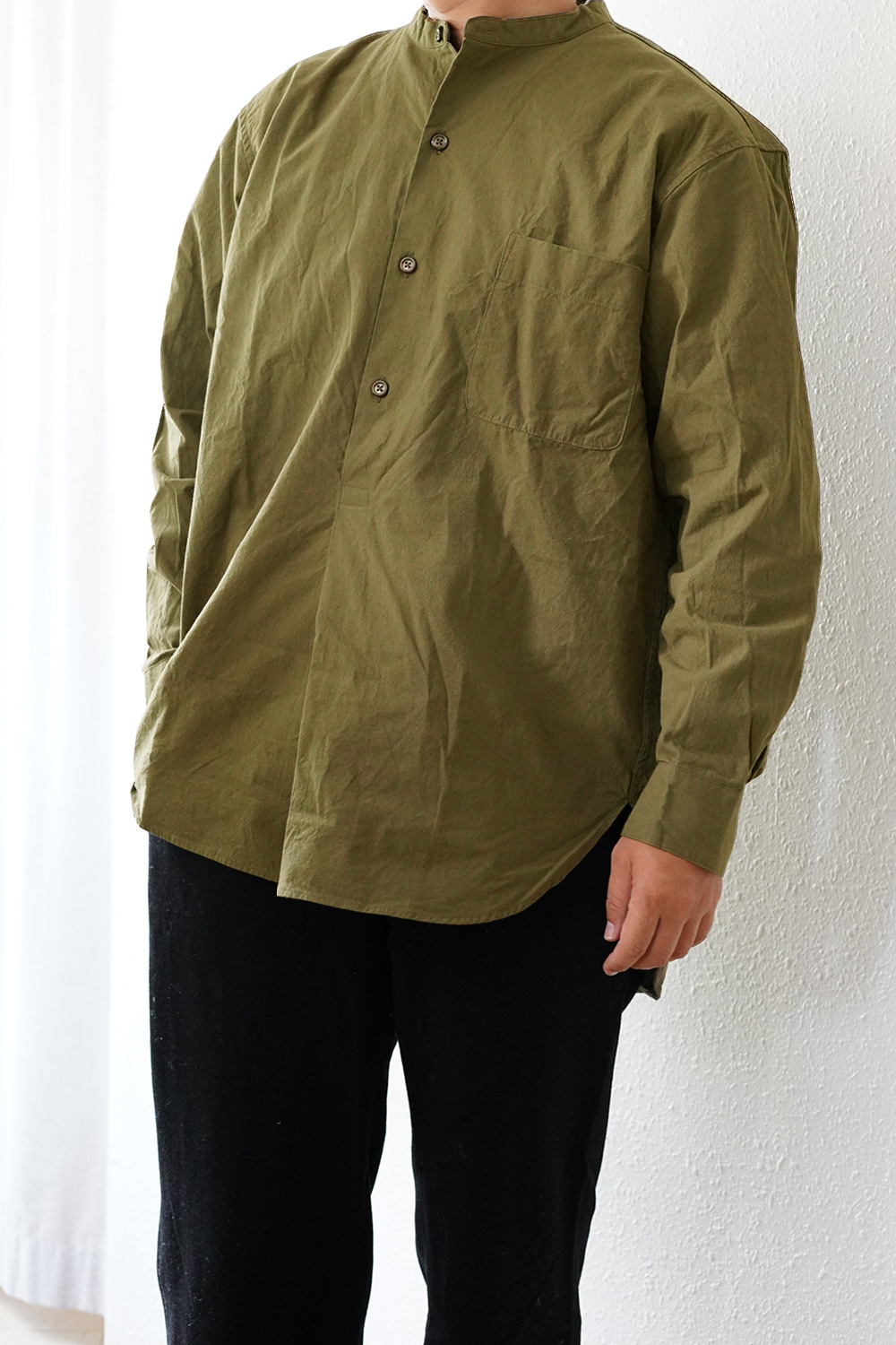デザインは、50年代イギリス陸軍cc41のバンドカラープルオーバーシャツをイメージソースにして作られております。