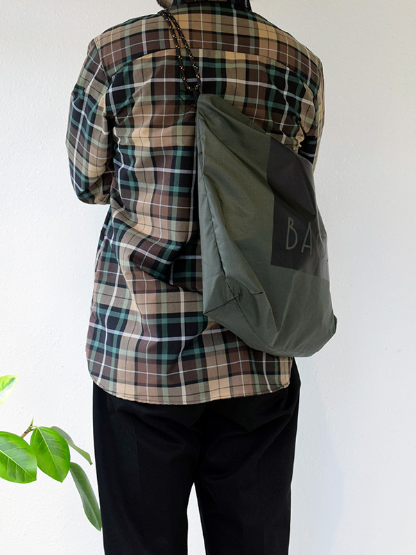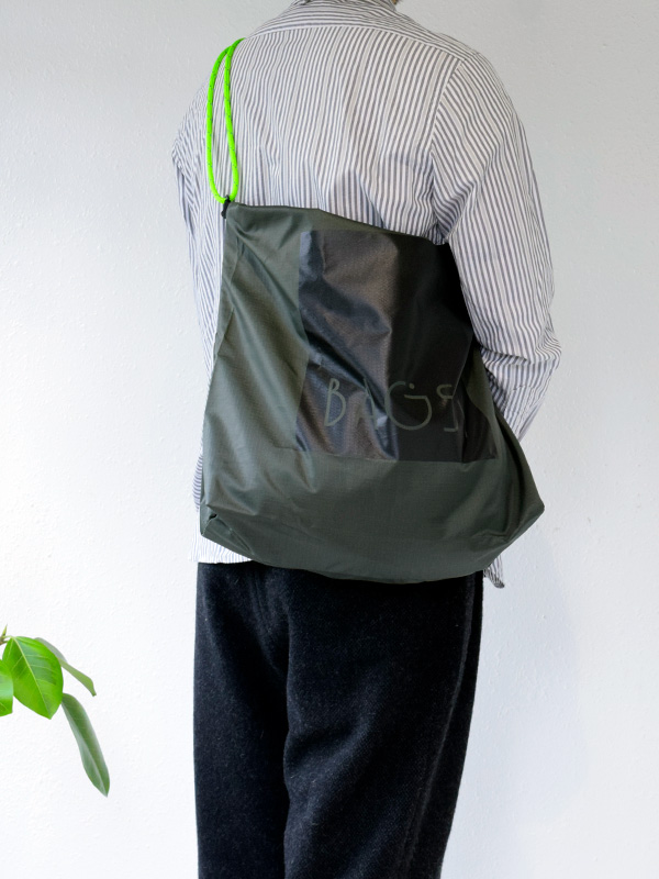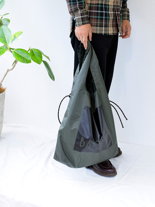 お買い物袋の大サイズほどのサイズ感で、エコバッグとしてパッカブルとして小さく畳む事も可能なので、お出かけのバッグにも邪魔になりません。(21Lの容量)