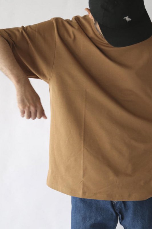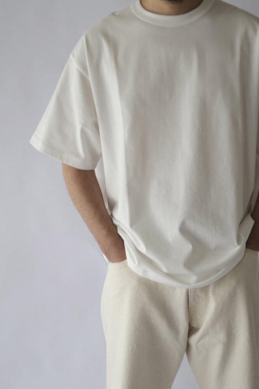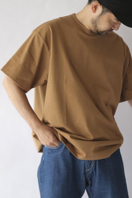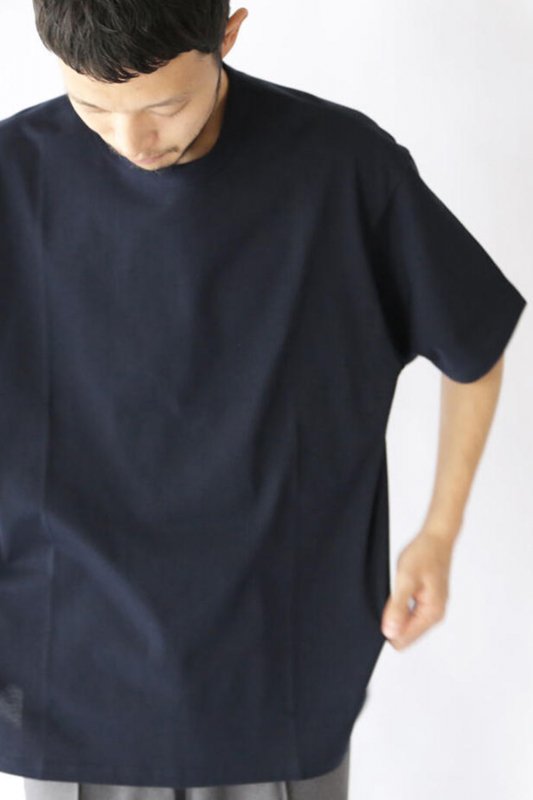全体的に風が入る隙間を造り通気性の良い、SIZE感は肩を落としてアームホールと身幅をたっぷりとったシルエット。