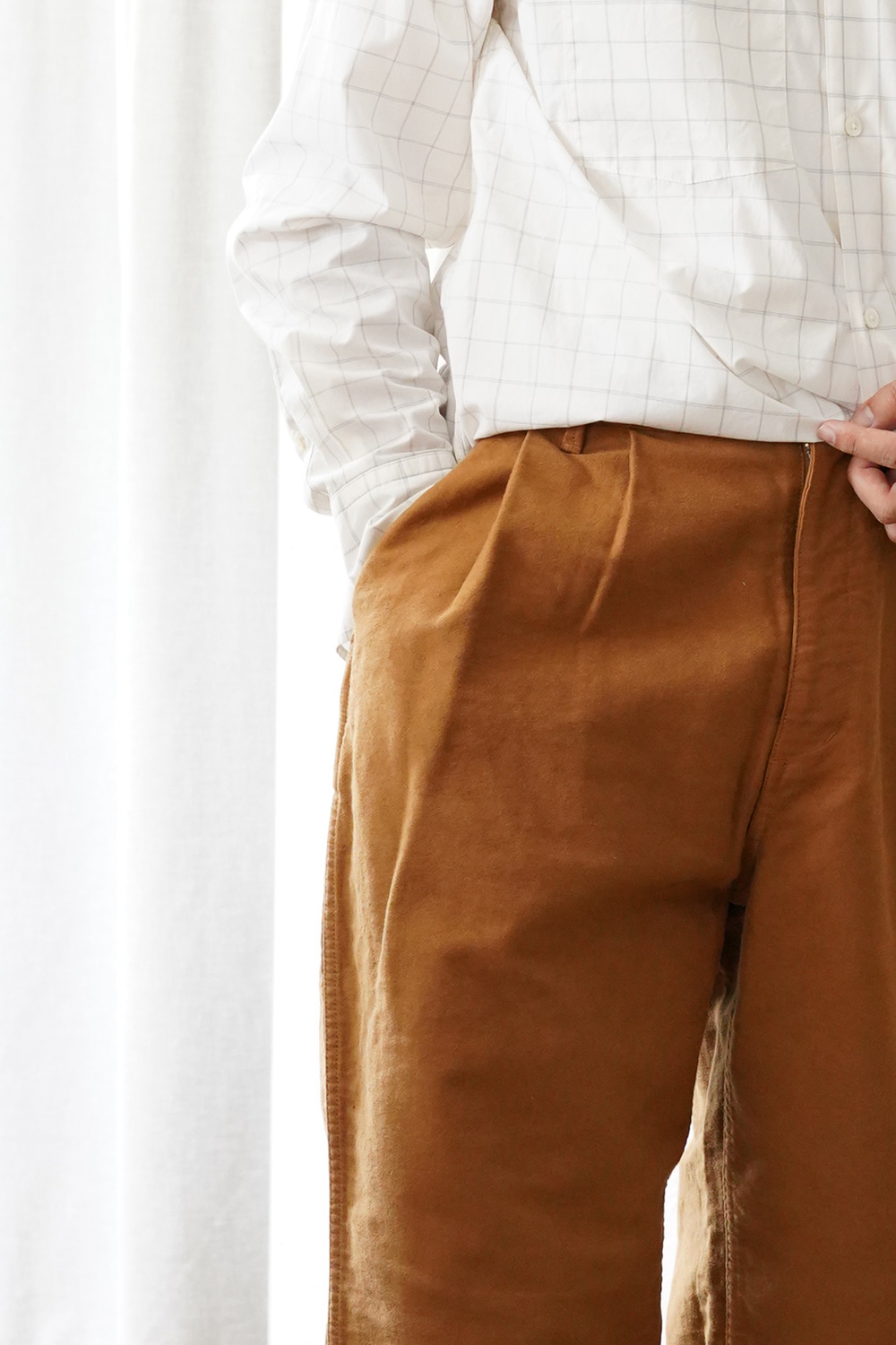 「綿でも冬らしいコーディネートができるPANTS」 超高密度モールスキン製品染めパンツ。