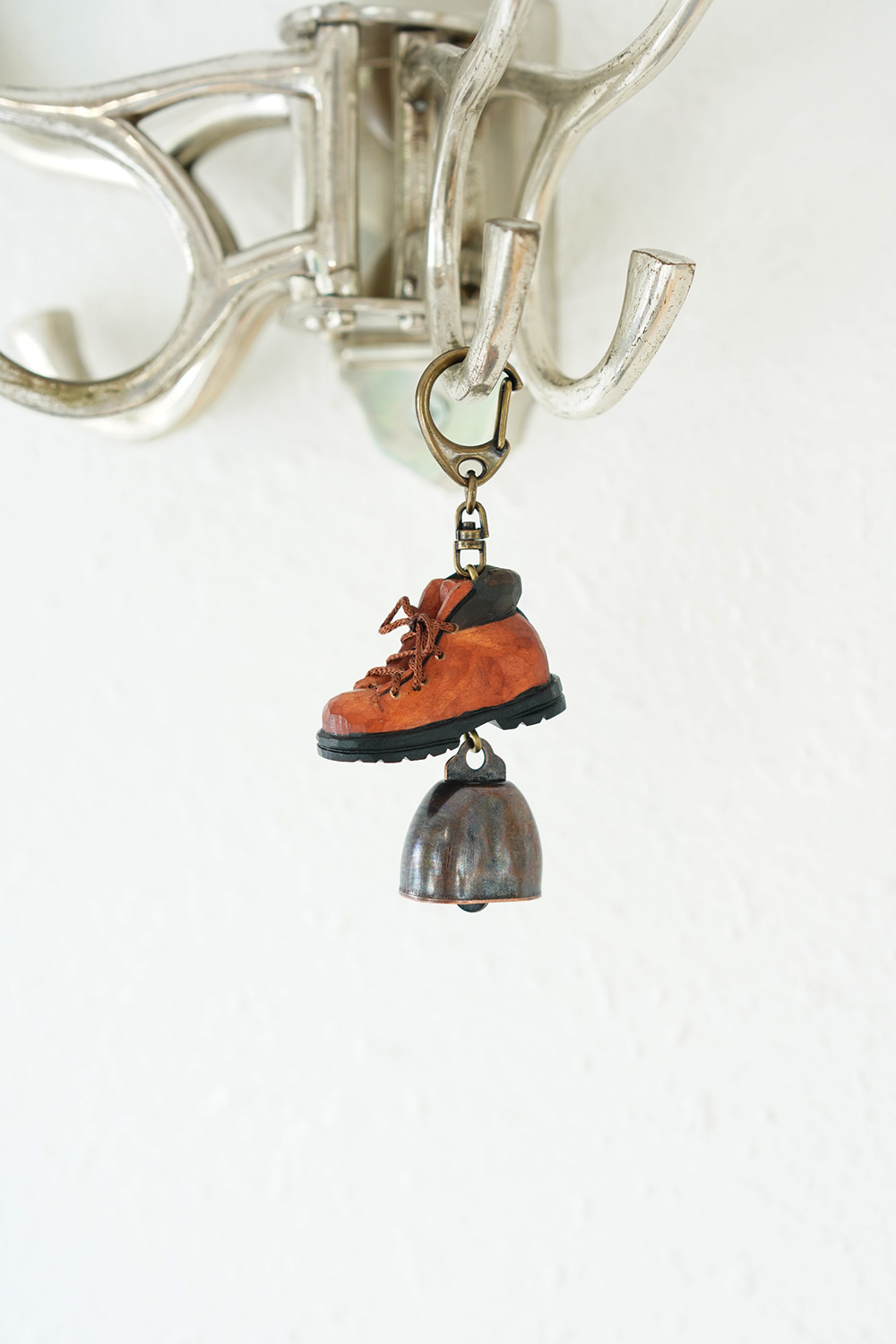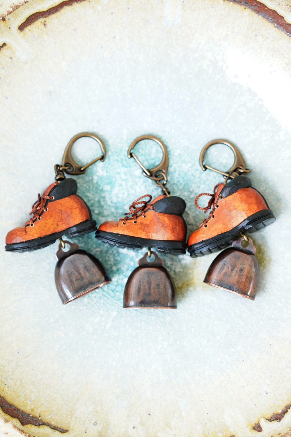 木彫りのブーツ型のキーホルダーが入荷しました。