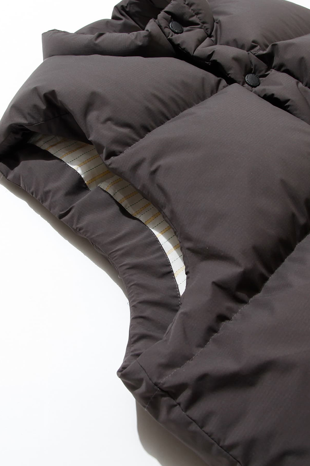 の上でも、ダウン量を多めに厚みを出しているので様になる DOWN VEST