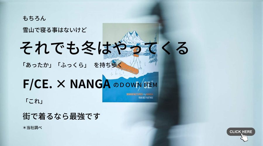 F/CE. × NANGA STAND LONG DOWN COAT の WEB 詳細はこちらから
