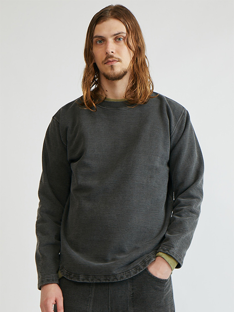 ラウンドした裾やリブなしの袖口も、通常のスウェットとは異なる新鮮な印象を与えてくれるポイントです。