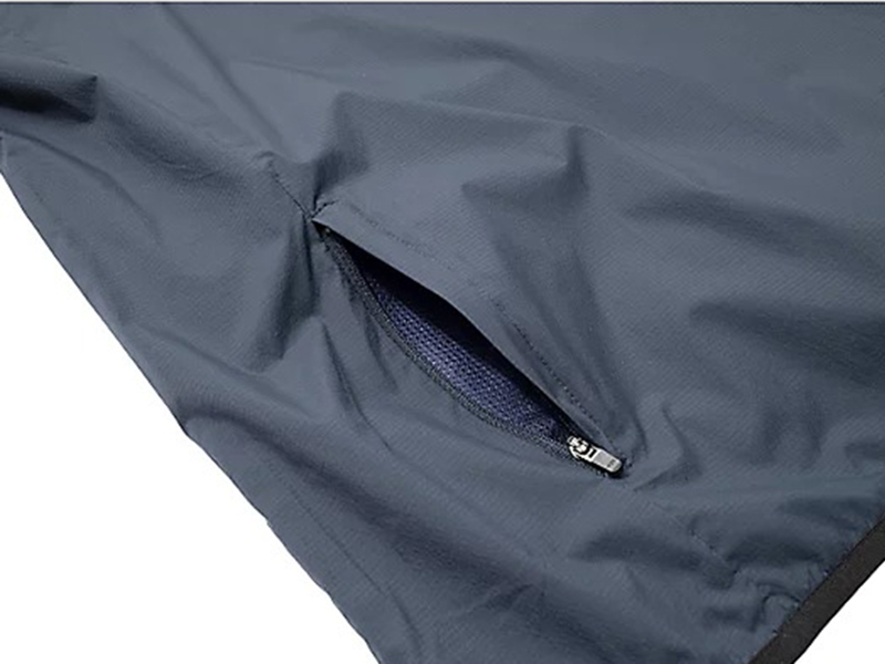 *裾サイドにZIPで開閉可能、開けるとメッシュ素材になるので熱気を逃がすdesignです