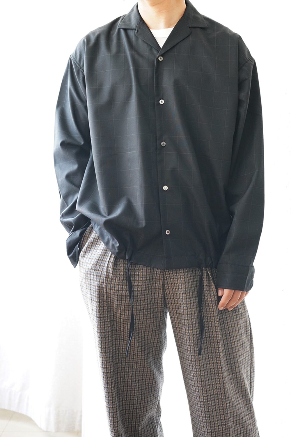 全体的にはBOX型のシルエット 裾にはドローコード仕様で、絞るとシルエットに変化を加える事が可能