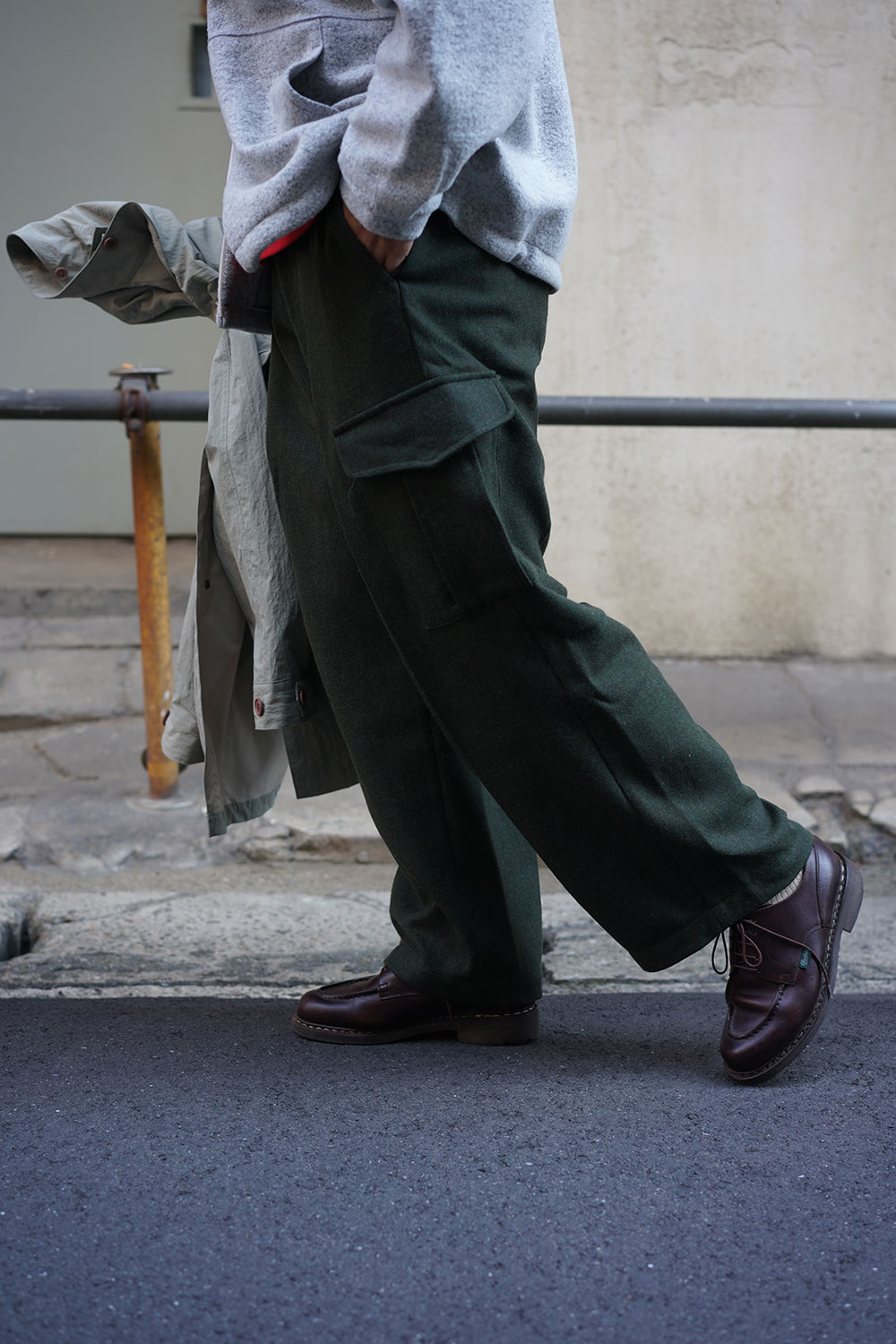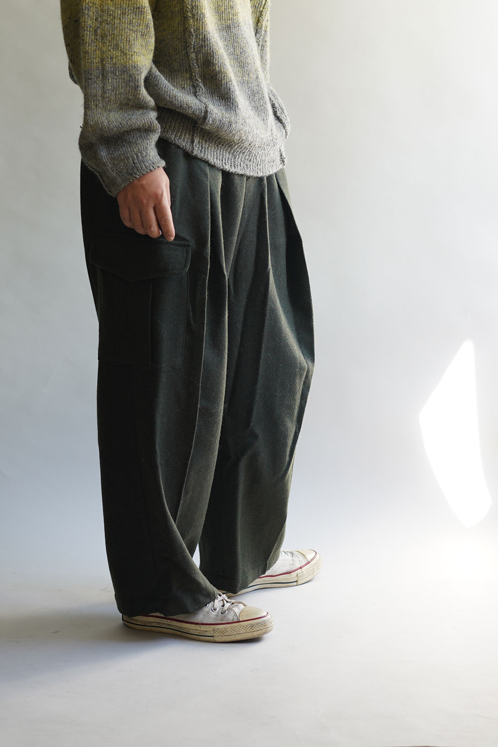 KICS DOCUMENT.(キクスドキュメント)WOOL DOUBLE TUCK CARGO PANTS 。