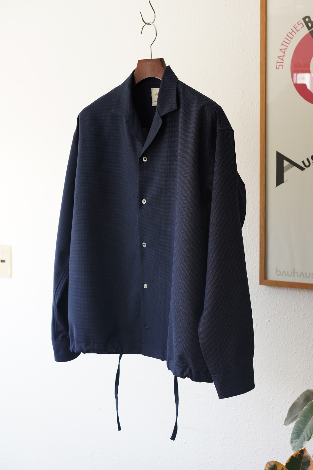 形はゆったりとしたボックスシルエットですが、裾のスピンドルで自在にシルエットを変えることが出来るので、様々な着方が可能です。