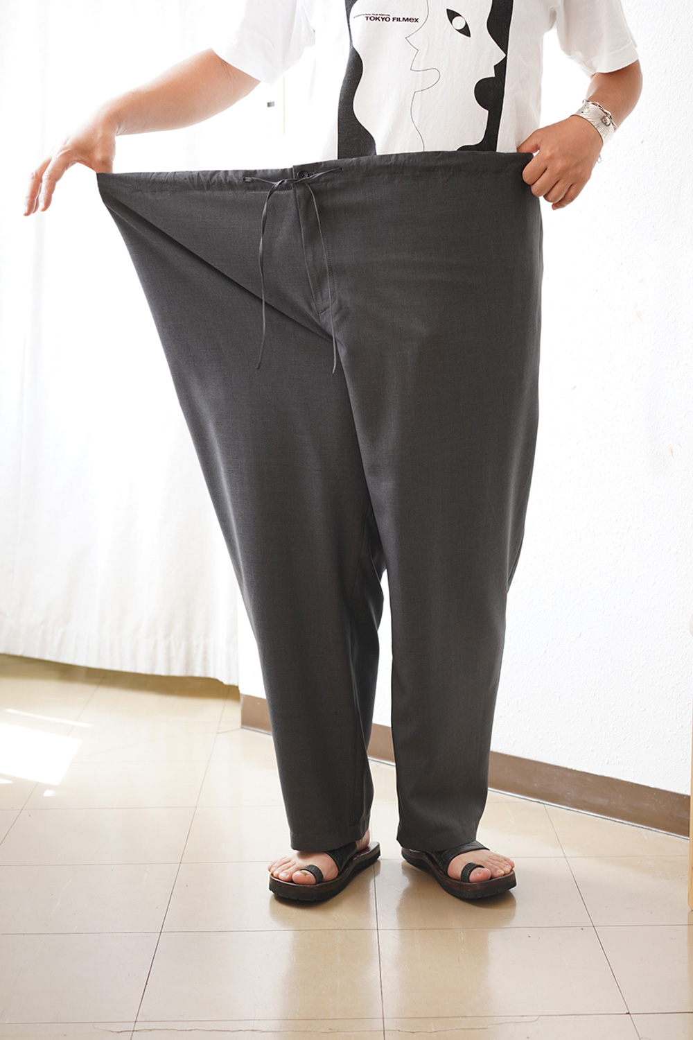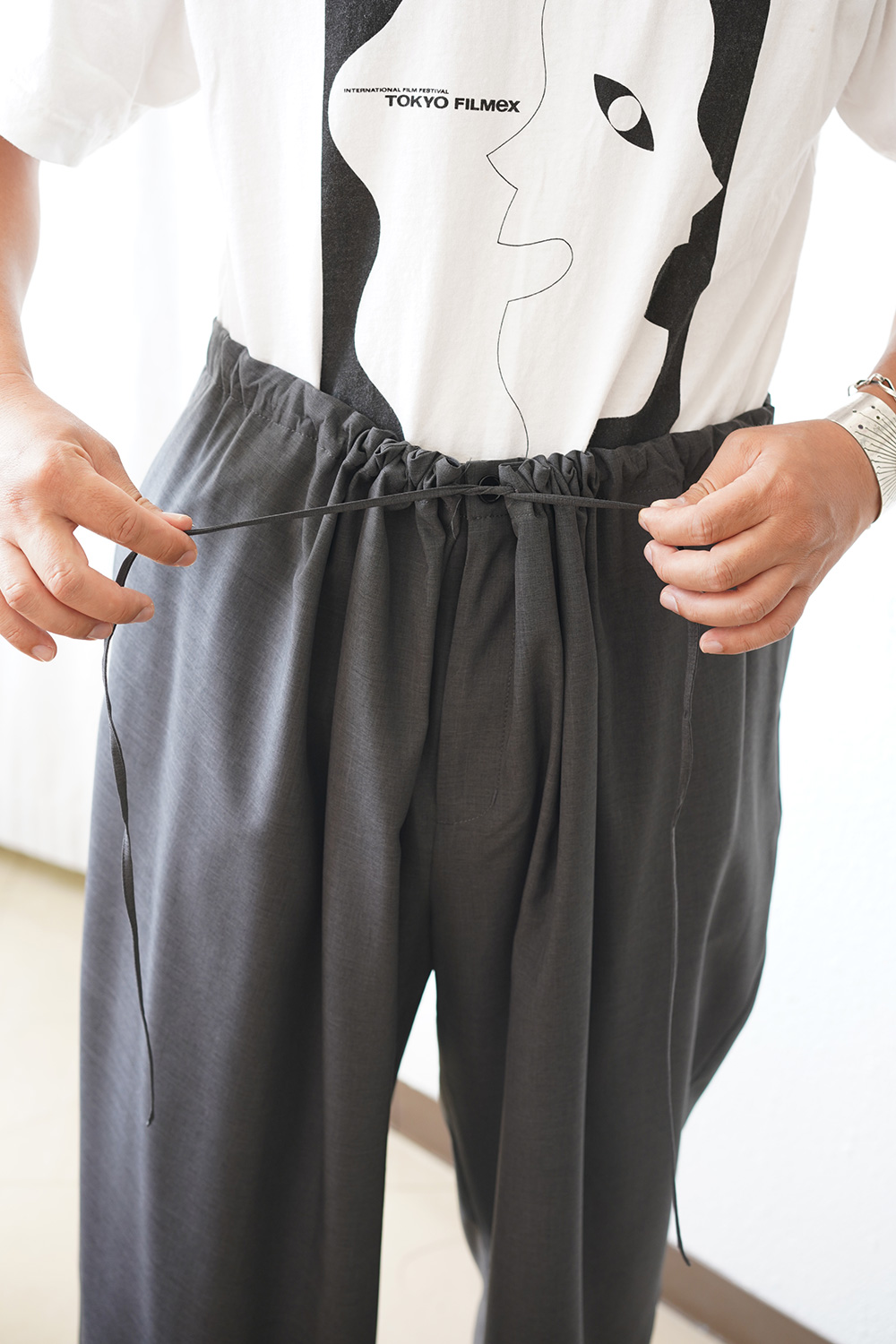 ウエスト調節が 60cmから136cmで幅広い人が履けるジェンダーレスなアイテム