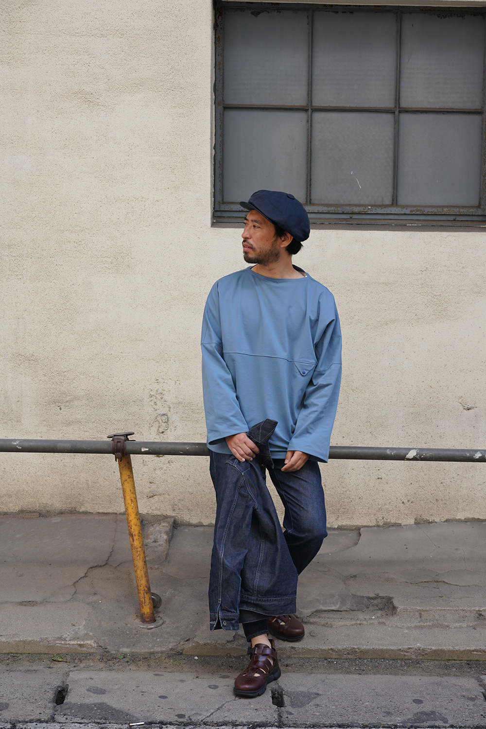 動きやすい気軽なアイテムで、癖になるデザイン性 袖をクルっとまくって夏でも着用できるアイテムです