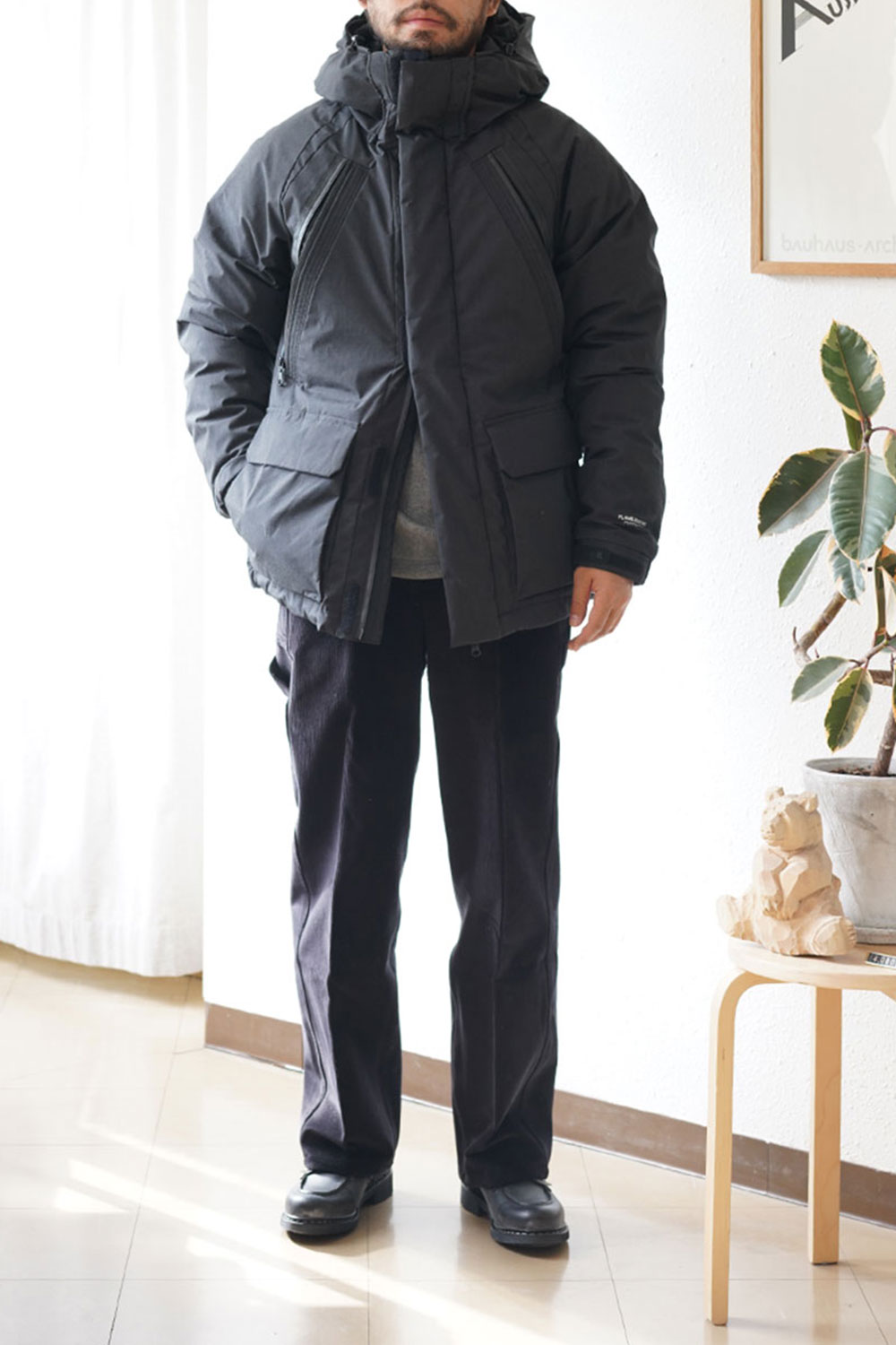 左右非対称のガチャポケ・シンチバック・サスペンダー用のボタンなどワークディテイールの本格的なデザインですが
