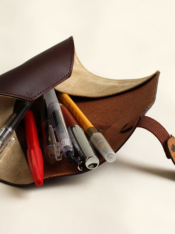 ペンを受け止めるため、革の端に沿って最小限のマチがついています。