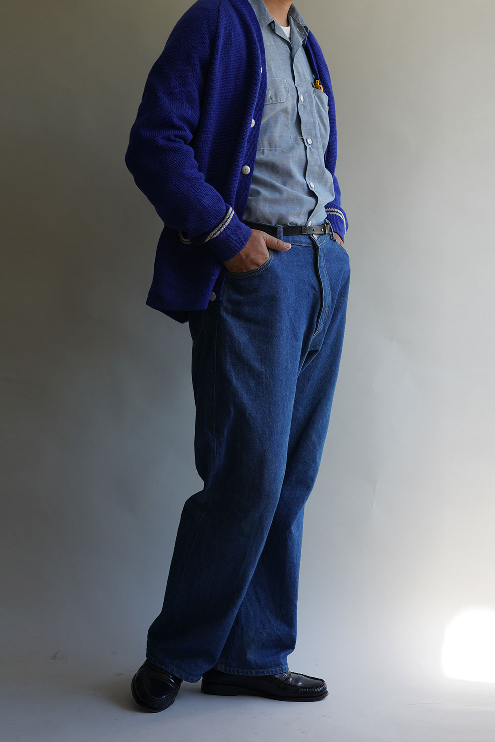 青系のスーツの足元は茶系だったし、DENIMのセットアップでも茶系のブーツだった