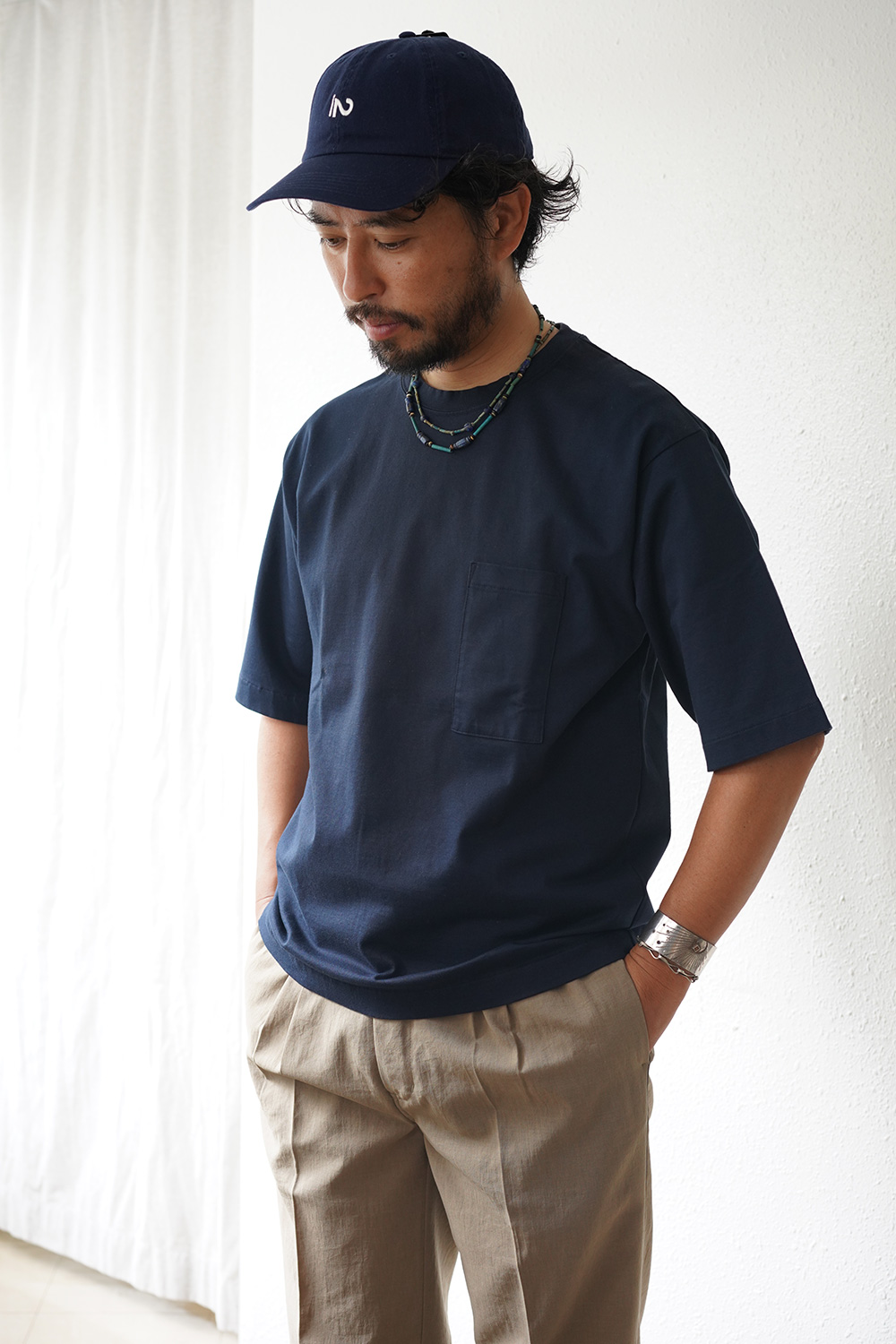 上質な綿花の名称の超長綿を原料に使用したすこしゆっとりしたサイジングのTシャツ