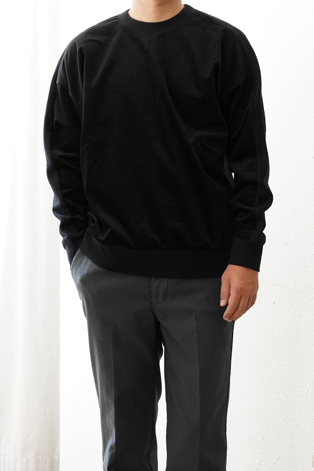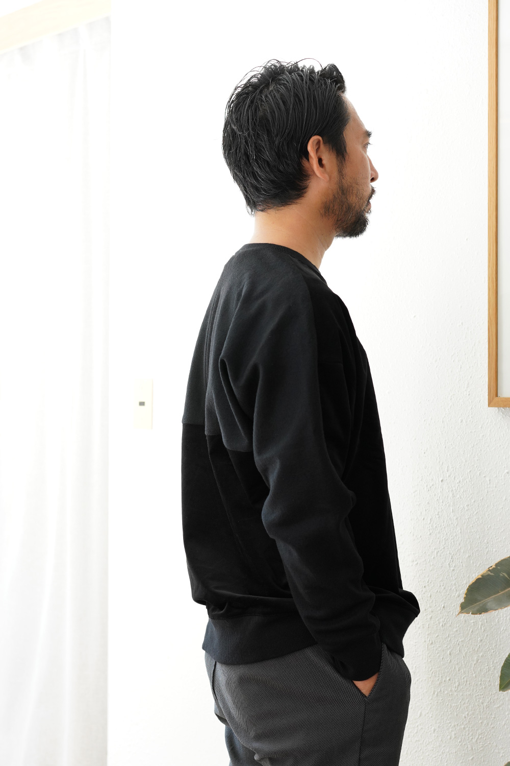 同色ながら 「マットなウール」に「光沢感のあるベロア」がデザイン性を生み