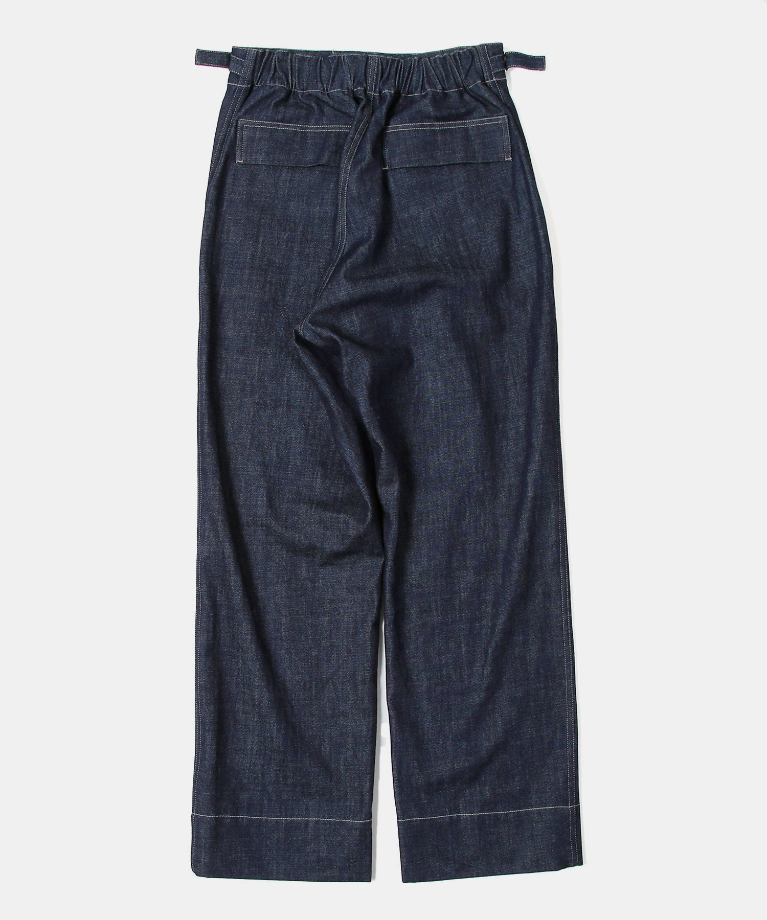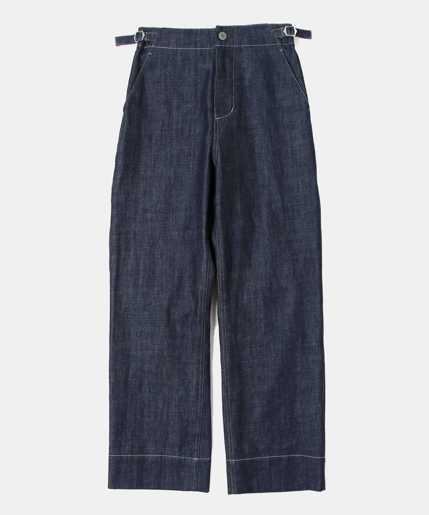 ウエストのディテールが特徴的なセミワイドシルエットのデニムパンツです。