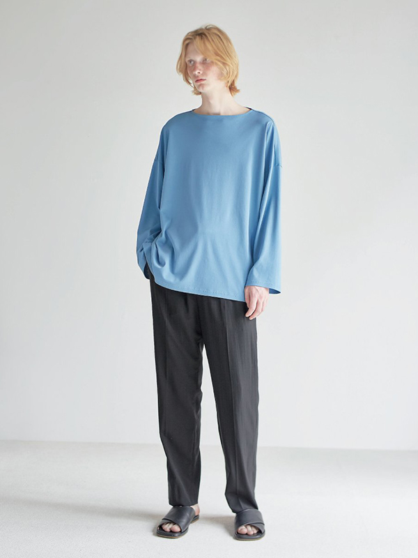 程よく開いたネックに、広めの袖口がリラックス感演出