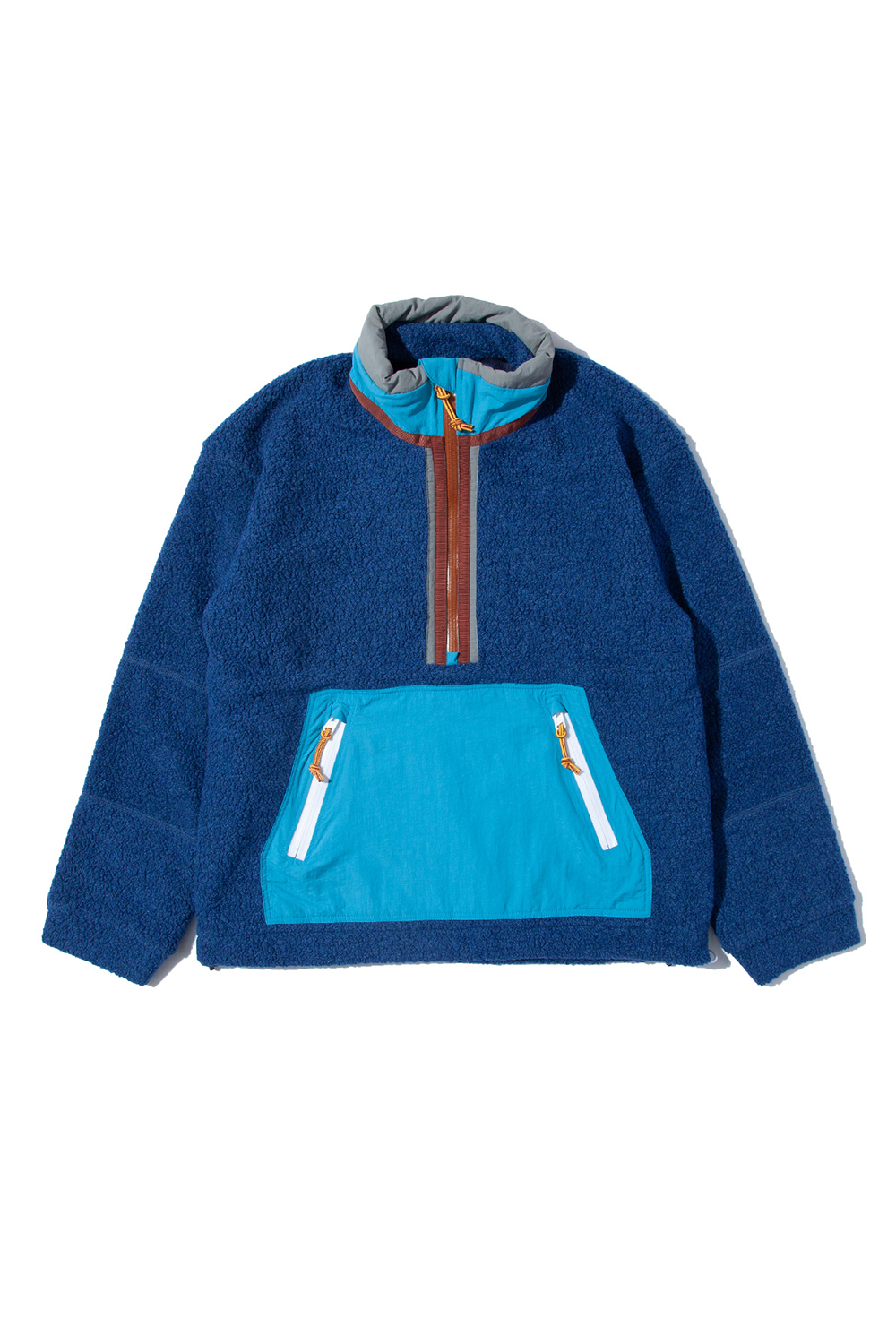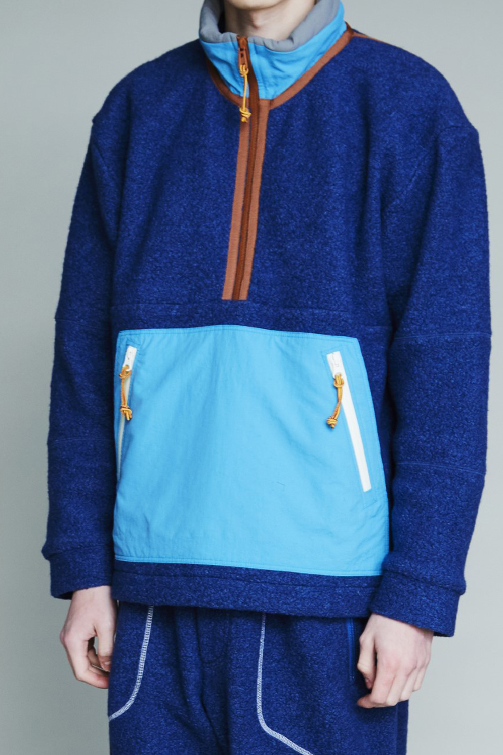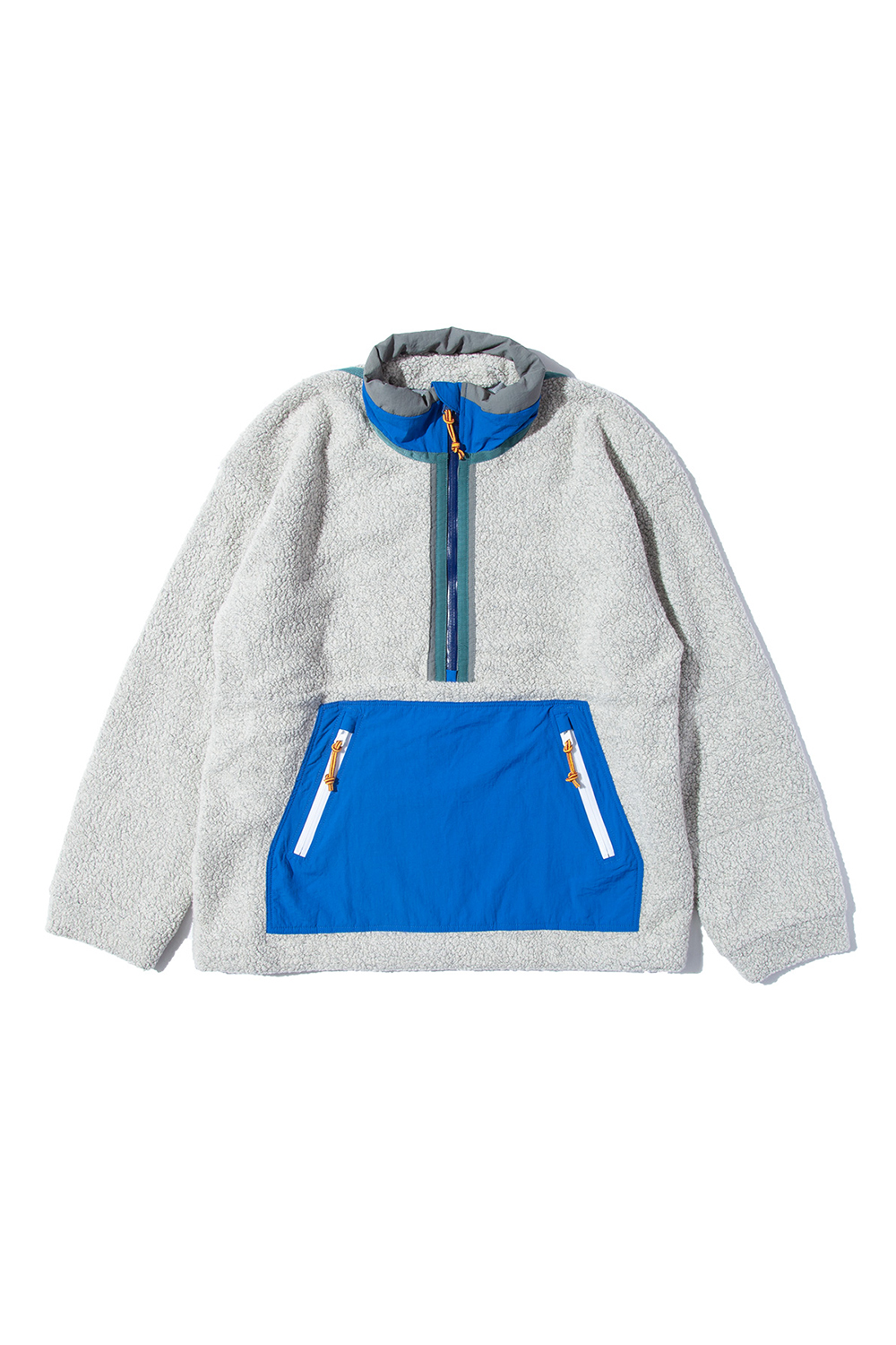 Zip Upプルオーバーは、襟元にインサレーションを入れて、首元からの風の侵入を軽減します。
