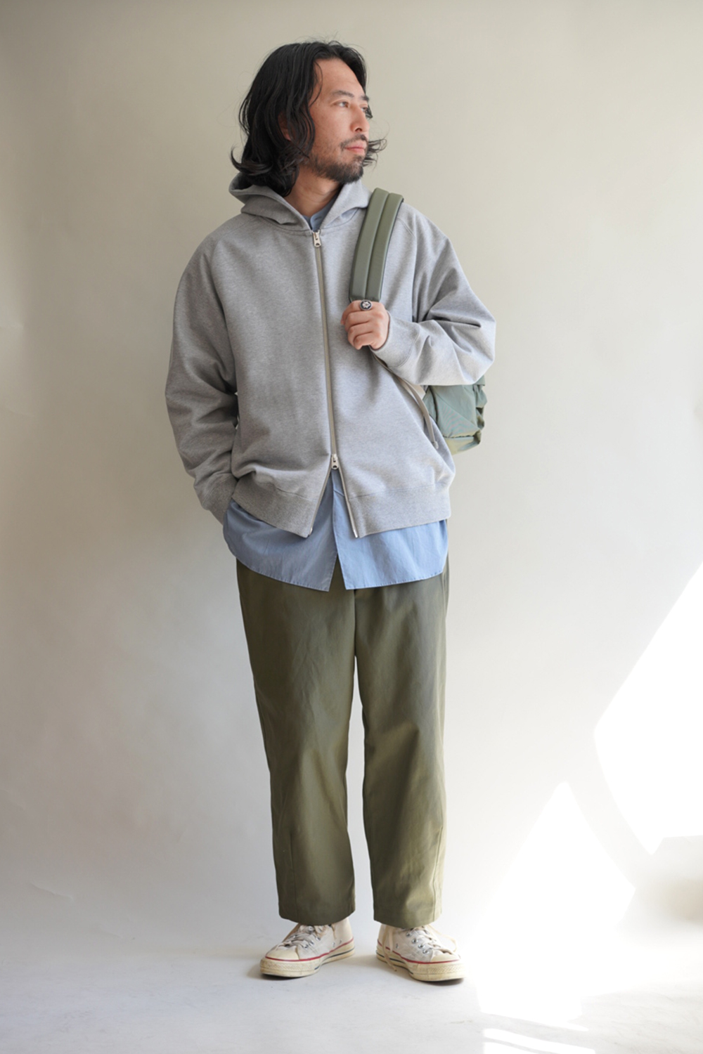 チノパンのライバル的な存在になるとおもいますが、裾に向かって程よくテーパードかかったシルエットが、絶妙!!ほんのちょっとのデザインですが、凄くデザインが効いいて、体のラインを綺麗にみせてくれていると思いました。