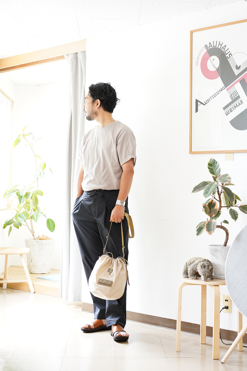 生地感はスポーティですが、アイテムの仕様をキレイめにすることで大人感を出しております。